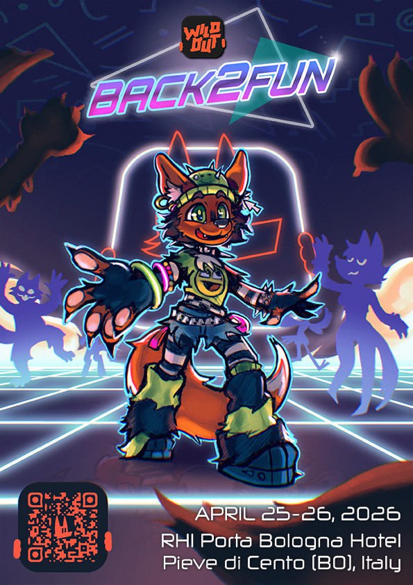 Gaming Area: Board games, retrogaming, and fursuit challenges with the pack.